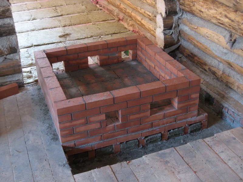 Если деревянные балки фундамента в нормальном состоянии, придется им добавить прочности путем установки опор. В случае гниение деревянных балок фундамента, придется заложить обособленный фундамент для новой конструкции. Важно, чтобы обкладка банной печи кирпичом не располагалась прямо возле печи, так как прижатая к сильно разогревающейся установке новая конструкция быстро изнашивается. А при сильном отдалении кладки, обеспечено затяжное прогревание печи и помещения. Лучше выложить кладку, отдалив ее от печи на два-пять сантиметров.