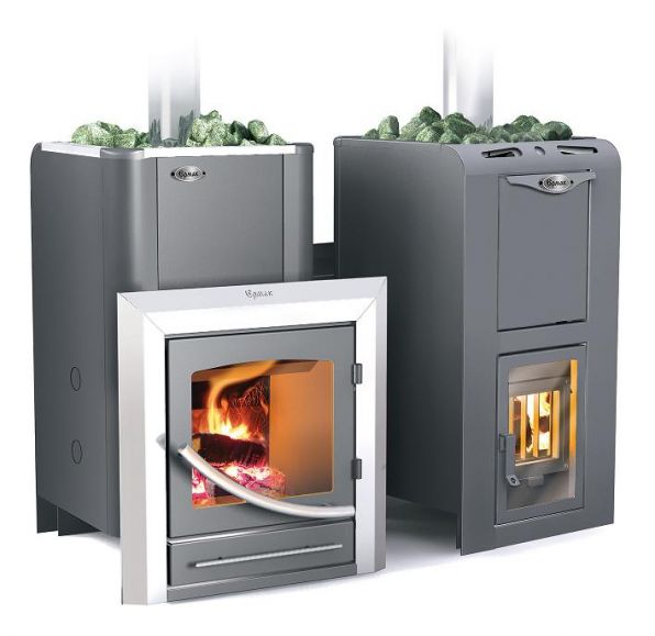Как свидетельствуют многочисленные фото печей ермак, среди них есть модели со специальными панорамными дверцами, которые производят эффект камина и выглядят очень элегантно и красиво. Как и большинство производимых каменок, печи ермак имеют разновидности по типу теплообменника, наличия бака для подогрева воды, по способу получения пара (влажного или сухого), по выбору энергоносителя (на дровяном отоплении или с помощью газовой горелки).