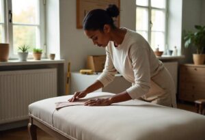 При выборе материала для перетяжки изголовья кровати, важно учитывать несколько ключевых факторов. Прежде всего, это долговечность и износостойкость. Ткань должна выдерживать регулярное использование и не терять своих свойств со временем.