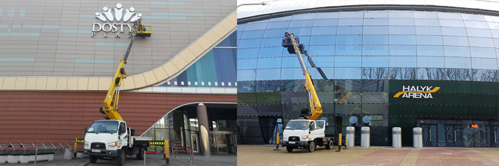 - Санитарные работы. В случае необходимости дезинфекции или обработки больших территорий, автовышки позволяют распылять реагенты на большой высоте.